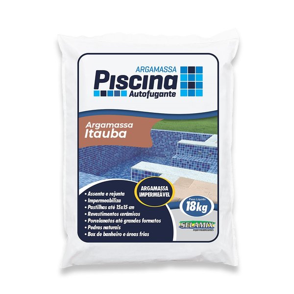 Argamassa Piscina Autofugante Impermeável é fornecida na cor Itauba.